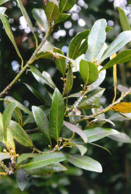 我が家の台所には、一年中ローリエを吊るしています。湿気を防ぎ、必要な時にすく使え、葉を軽く折って使うと香りが良いようです。ゲッケイジュは明治38年頃に渡来し、記念樹等に植栽したようです。私の義父も明治38年生まれで植物が好きだったので、「いつ頃に植えたのかなあ」と思い出しています。